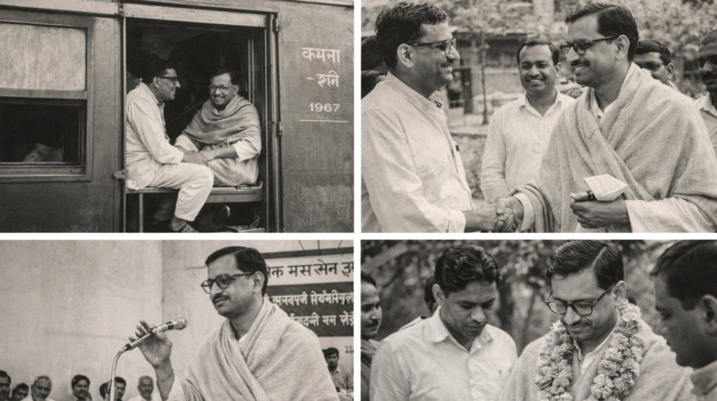 In 1967, he became the National President of the Bharatiya Jana Sangh, guiding the party with humility and ideological clarity, expanding its national presence and shaping policies based on Integral Humanism and inclusive development.
